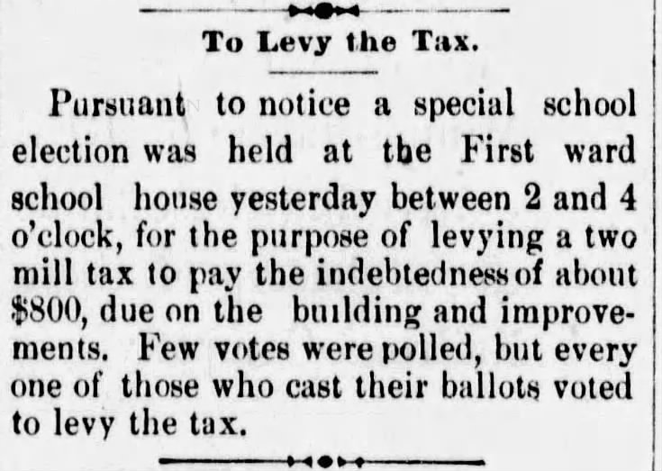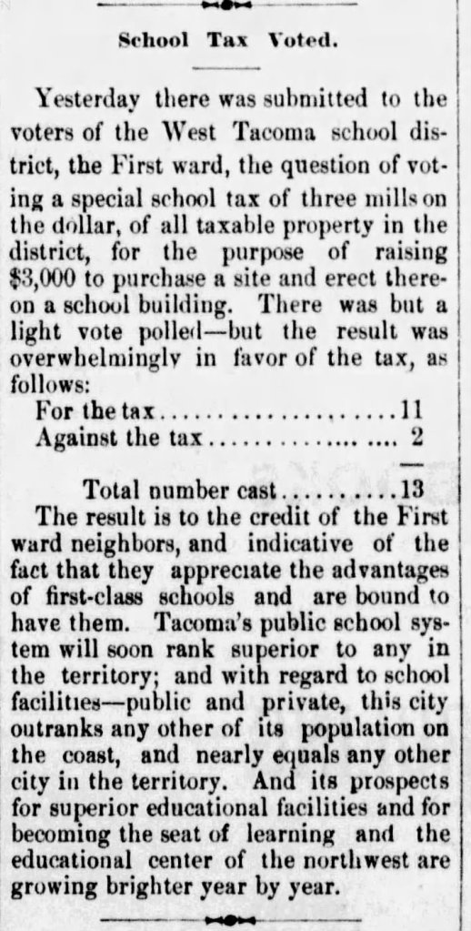 Voters in the West Tacoma school district in the First ward approved a tax in support of the school.