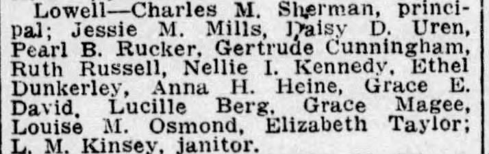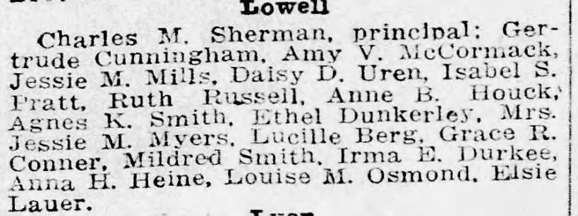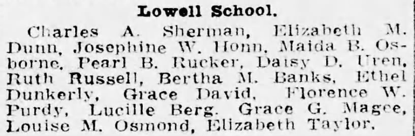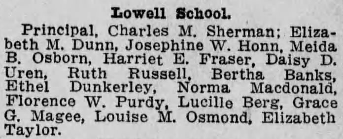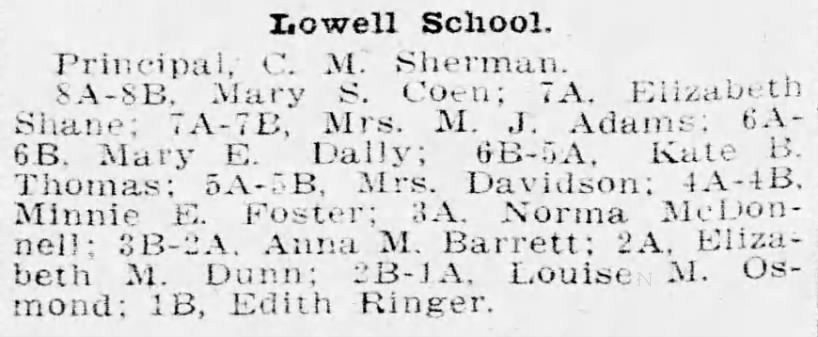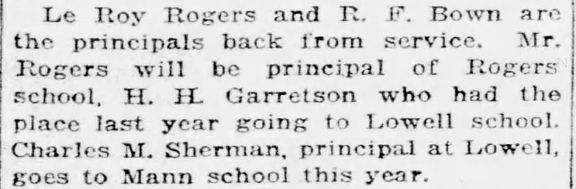 Henry H. Garretson is announced as the new principal of Lowell school. Principal Sherman moves to Mann school.