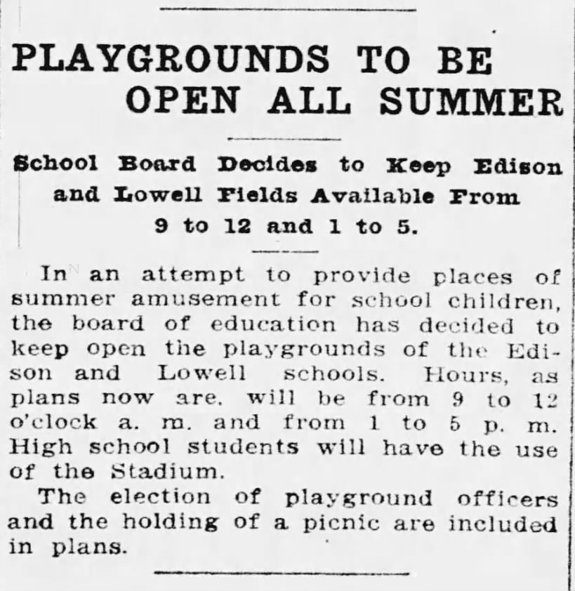 The school board makes the decision to keep the school playgrounds of Lowell and Edison schools open for use during the summer months.