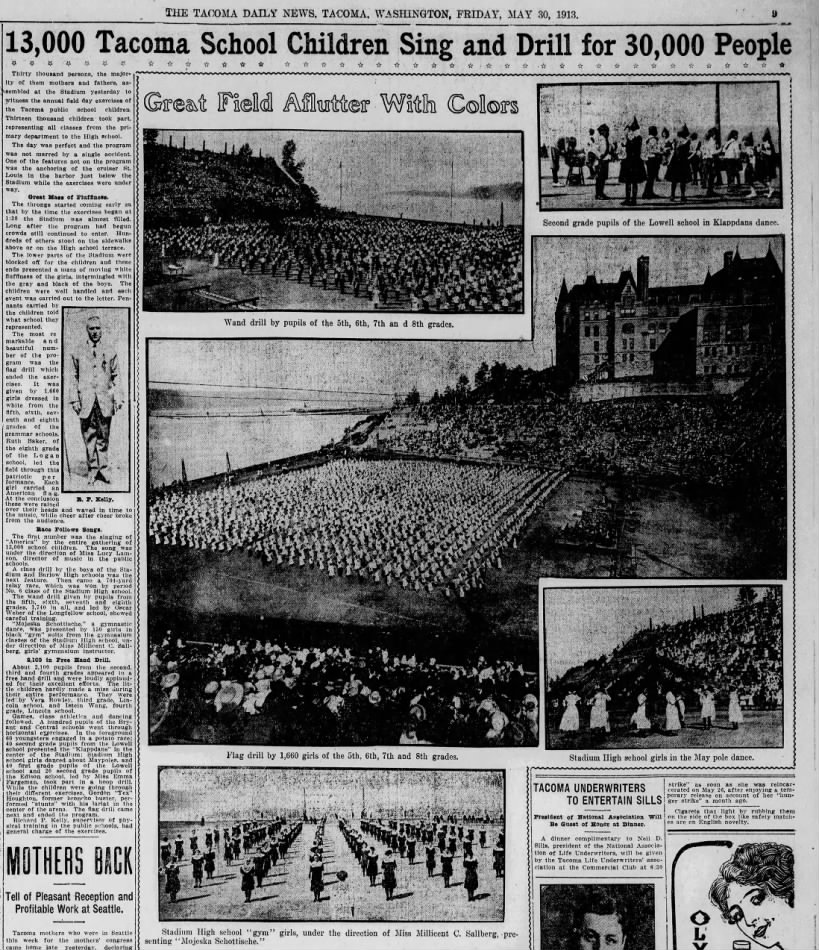 The result of the essay contests in the grammar schools and high schools on “The Early History and Growth of Tacoma Schools” was announced by Miss Jennie Jones, one of the judges. In recognition of one essay which was considered worthy, but did not live up to all the requirements of the contest, Miss Rose Portman of Stadium High School was requested to read her contribution. The winners were Percy Smith, for Stadium; Miss Helen Dryden, for Lincoln High. Miss Margaret Dzizak of Sheridan. Mildred Spinning of McKinley and Betty Morrison of Lowell were given honorable mention. The cash prizes awarded by The News Tribune were presented by Frank S. Baker.