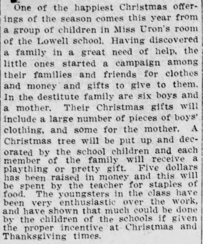 Lowell students collect Christmas gifts, clothes and money for food to help out a family in need.