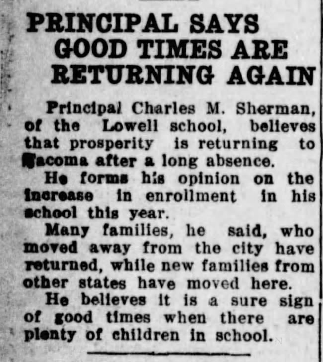 With school enrollment up, Principal Sherman predicts that prosperous times are returning to Tacoma.