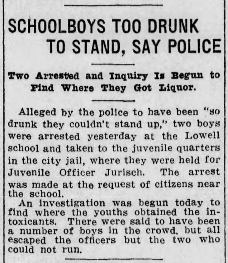 Two boys are arrested at Lowell for being drunk. They were too drunk to stand.