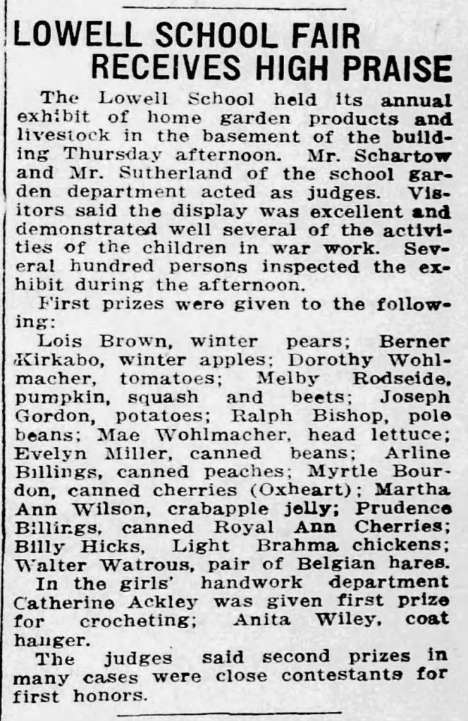 Lowell students do well in the annual school fair, in which they show off their garden produce and small livestock animals.
