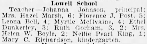 School board secretary Carl G. Caddey reveals that the district has purchased the three homes adjoining the Lowell school grounds, and that they plan to sell one of the houses to the highest bidder, with the requirement that it is removed from the school grounds. The other two homes will be used as classrooms.