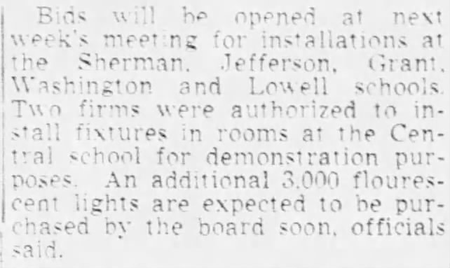 Bids will be opened for the installation of flourescent [sic] lighting in several schools, including Lowell.