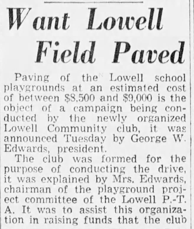 The plan to pave the Lowell school grounds with asphalt proceeds.