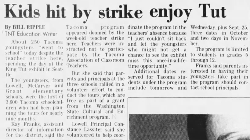 Tacoma students, including those from Lowell, are able to see the King Tut exhibit in Seattle, despite the teacher strike.