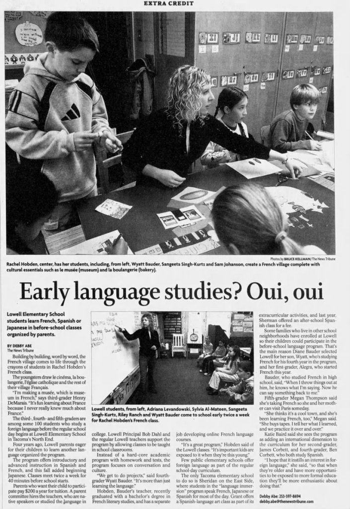 The third-, fourth- and fifth-graders are among some 100 students who study a foreign language before the regular school day begins at Lowell Elementary School in Tacoma’s North End.