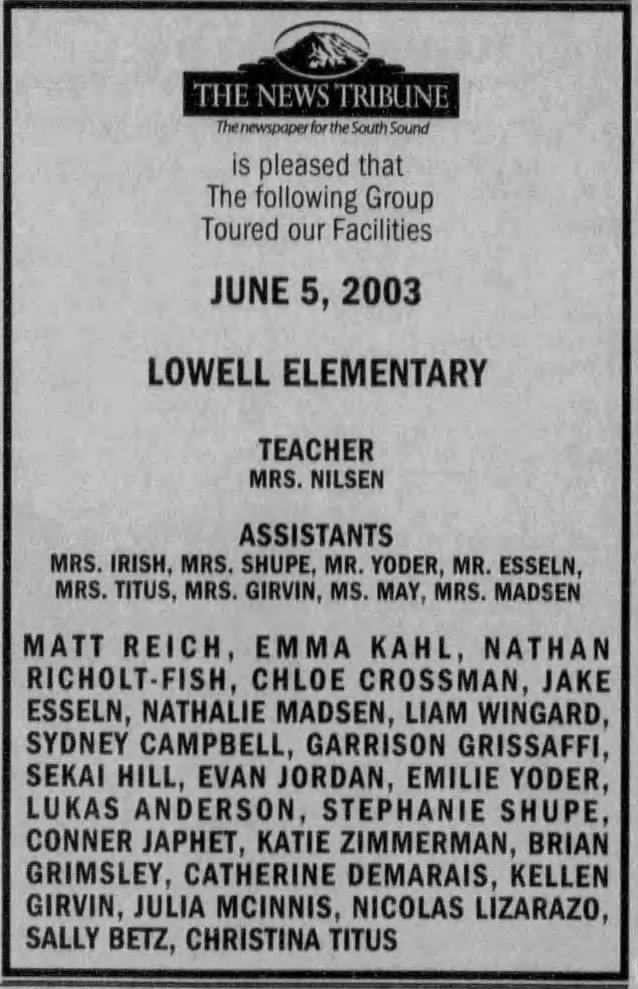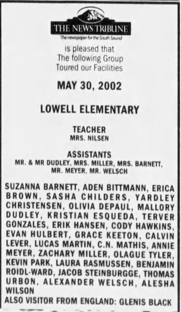 Source: The News Tribune – Wednesday, June 28, 2000, p. 49